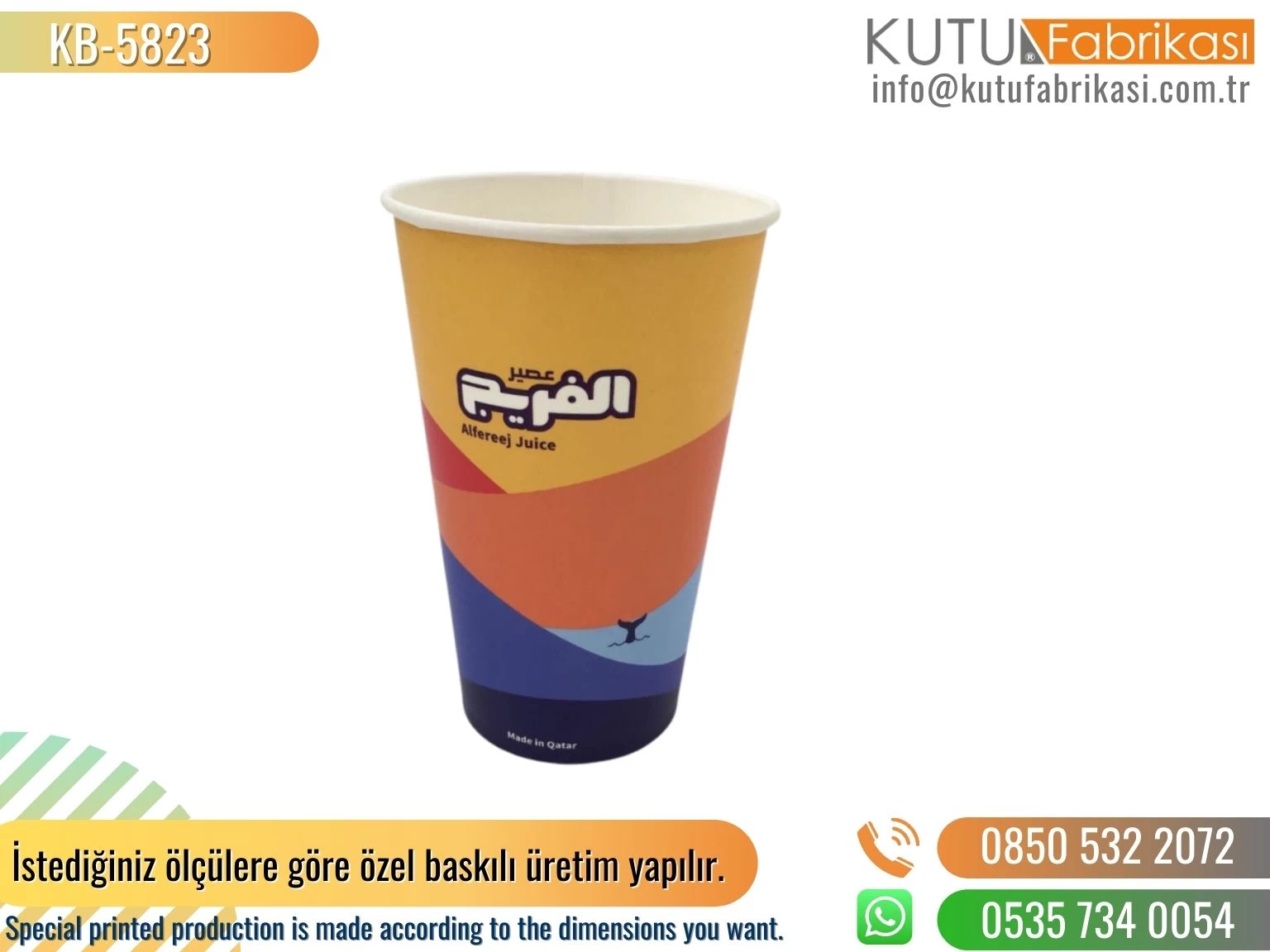 The minimum order quantity for custom printed paper cups is 50k, it may vary depending on product size, but we strive to offer affordable and flexible options.
