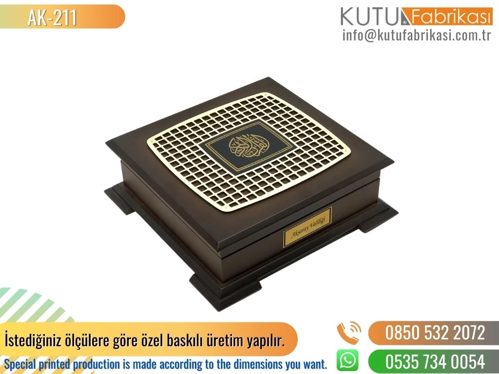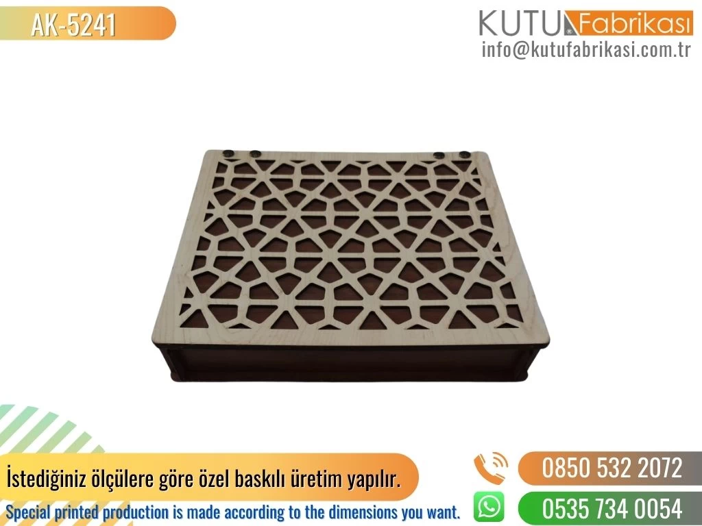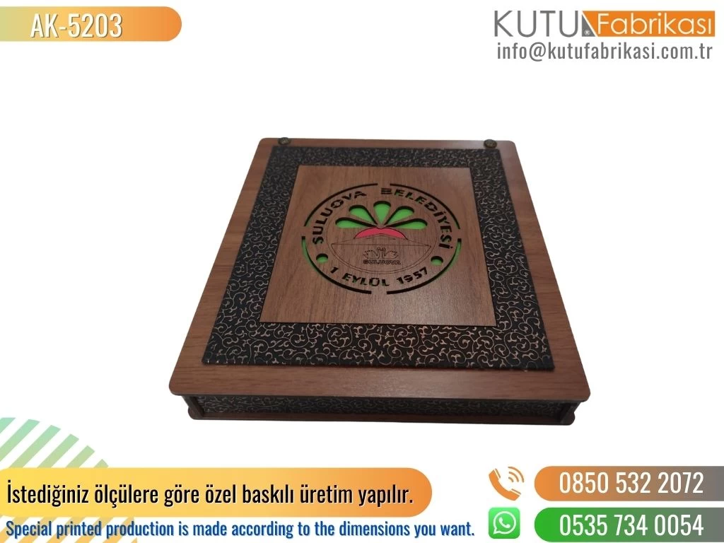 Laser printed wooden boxes are an option that offers branding and personalization opportunities. We achieve a special appearance by laser engraving our customers' desired logos, names or patterns on our boxes. This allows customers to highlight their brand and leave an unforgettable impression by making their products unique.